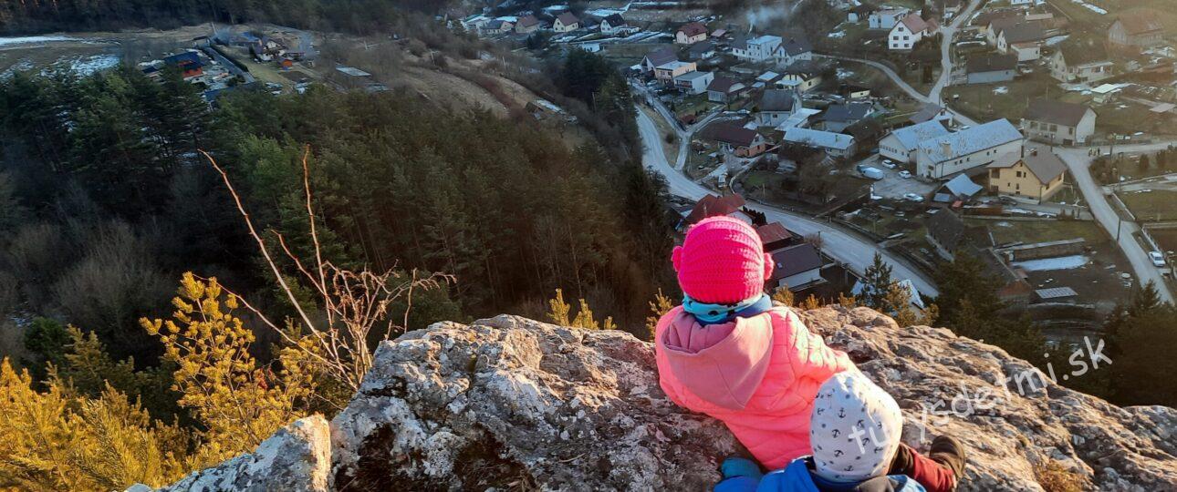 Z tejto skaly sú krásne výhľady na dedinu a na Hričovský hrad. Cesta je to jednoduchá. Na vyhliadke je malá skalka, na ktorej si vždy deti radi polezú. Naspäť sme išli netradične popod skalu, aby som im ukázal ďalší lezecký sektor a potom cez kríky na výstupový chodník a k autu.