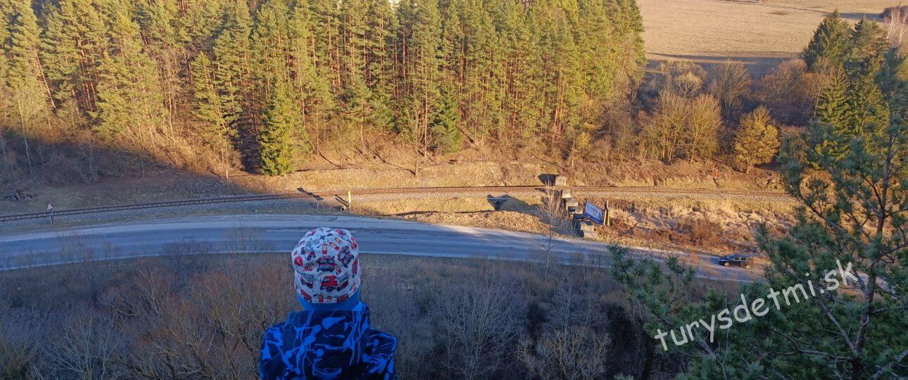 Deti už mali na dnes program, ale podarilo sa mi Gabka prehovoriť (netrvalo to ani veľmi dlho) na túru ponad Porúbku. Stačilo mu spomenúť, že tam budú skaly a bolo vybavené. Zaparkovali sme pri zastávke v Porúbke, odkiaľ sme šli poza domy a preši po železničnom moste. Odtiaľ sme sa napojili na zelený náučný chodník a blatistým terénom pokračovali ku skalám. Za studničkou už šiel chodník prudko nahor, v niektorých miestach sú tu aj reťaze. Za chvíľu sme boli na vrchu skaly a pozerali hmýriace sa autá. Odtiaľ sme pokračovali ďalej celkom prudko nahor, až sme sa dostali na hrebeň. Po chvíľke sme odbočili na ďalšiu vyhliadku, kde sme si trochu oddýchli. Vrátili sme sa na hrebeň a za pár metrov sme odbočili do lesa teraz už prudko nadol až sme prišli na koniec chatovej oblasti. Odskočili sme ešte pozrieť mini vodopád, ktorý bol ešte celý zamrznutý a nakoniec sme sa po modrej TZ vrátili k železničnému mostu.
